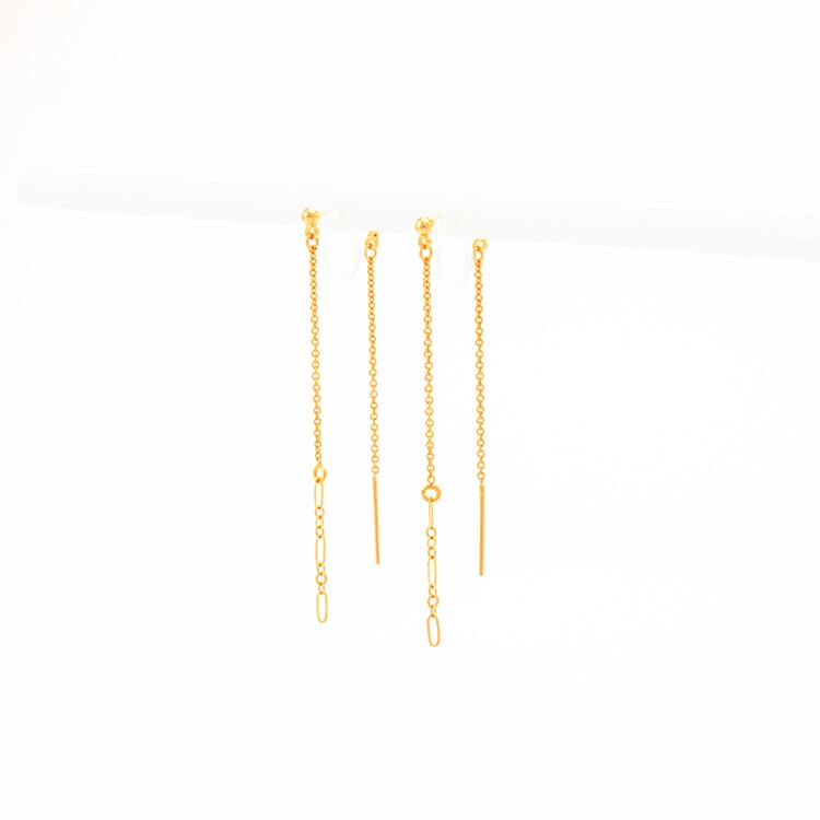 ゆらゆらと揺れる長めのチェーンは、ゴールドの輝きを際立たせます。