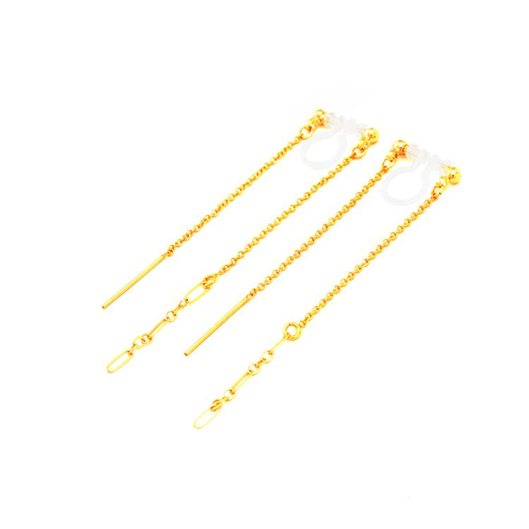 究極にシンプルな美しさで、金のチェーンを飾りにあしらった アメリカンピアスを、耳に優しいノンホールピアス(イヤーカフ・イヤリング)でお使いいただけるように仕上げています。