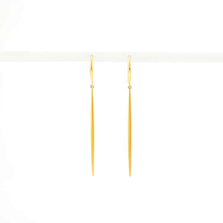 シャープでクールな印象のメタルモチーフを、木の枝に見立てたフックピアス。究極にシンプルで美しいデザインでありながら、ファッショナブルな存在感を醸し出します。
