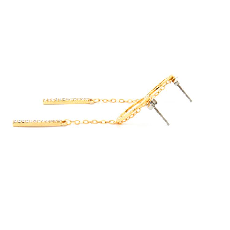 煌めきの美しい”ロングチェーンとラインストーン”がスタイリッシュに揺れて、大人の上品な存在感を醸し出します。