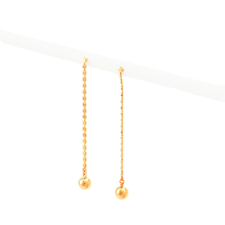 愛らしく小ぶりなドットモチーフが、一列に並ぶロングチェーンのスタッドピアス。揺れる丸いフォルムのメタルボールが、さり気なくアクセントになっています。